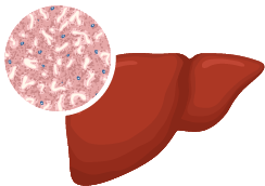 Otłuszczona wątroba produkująca ograniczone ilości żółci, która nie jest już w stanie filtrować krwi.